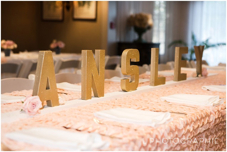And the kids’ tables – loved the glitter letters and ruffly linens!