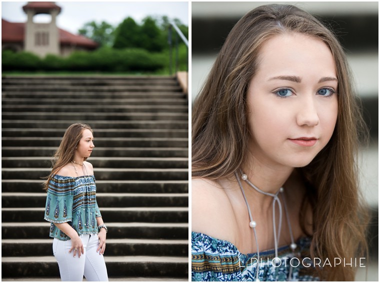 This week has been a bit nutty – I teach dance one night a week and this weekend is my kids’ annual recital…so lots of rehearsals, last minute costume adjustments and making sure the show is ready! But had to get this gorgeous girl up on the blog before the weekend. Emily and I had a short and sweet session in Forest Park this spring. Love these first few on the World’s Fair Pavilion steps…really made her blue top stand out :)
